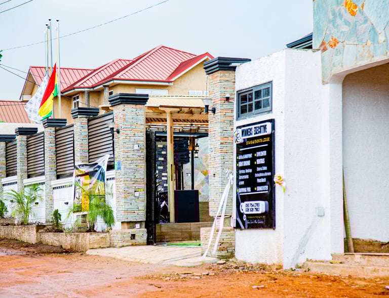 Nestled in Accra-Oyibi, just 35 minutes from Kotoka Airport, with easy airport drop-off.